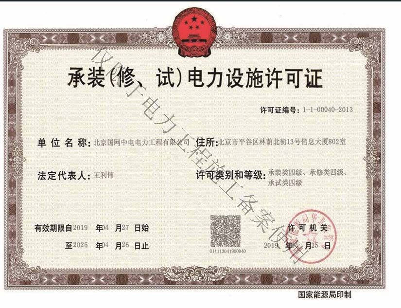 當前您所在的位置:首頁 > 企業資質 > 電力設施許可證電力設施許可證
